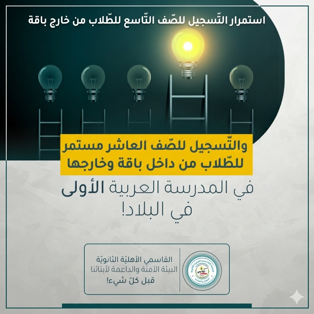 والتّسجيل للصفّ العاشر مستمرّ للطّلاب من داخل باقة الغربية وخارجها... سارعوا فالأماكن محدودة...