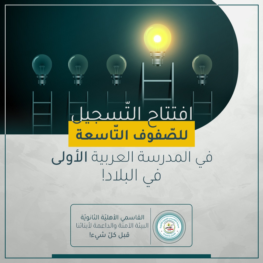 يبدأ التسجيل للصف التاسع للسنة الدراسية المقبلة 2026-2027 يوم الاثنين 19.1.2026 ويستمر حتى يوم الثلاثاء 10.2.2026